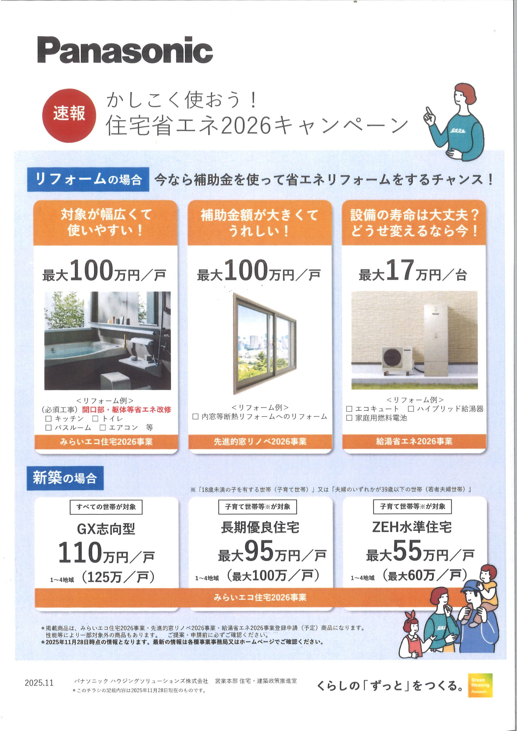 この度、住宅省エネ2025キャンペーンに引き続き、2026キャンペーンの情報が開示されました。