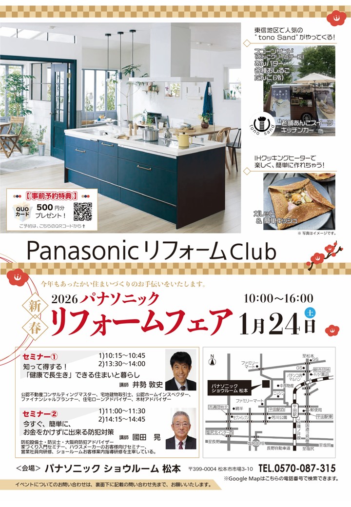 パナソニック ショウルーム松本にて、 Panasonicリフォームclub合同イベントが開催されます。
